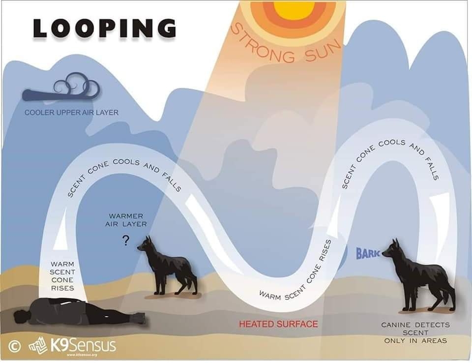 Мы не можем почувствовать запах, который чувствует собака, но мы можем помочь ей найти источник запаха. Для этого проводник должен понимать природу ветра, погоды, рельефа местности и временной задержки. Эти элементы определяют, концентрацию запах и куда он распространяется. Способность проводника собрать все эти элементы воедино определяют, насколько качественно собака будет работать.