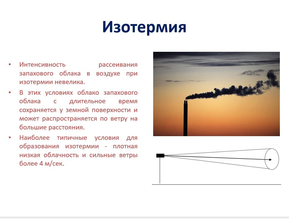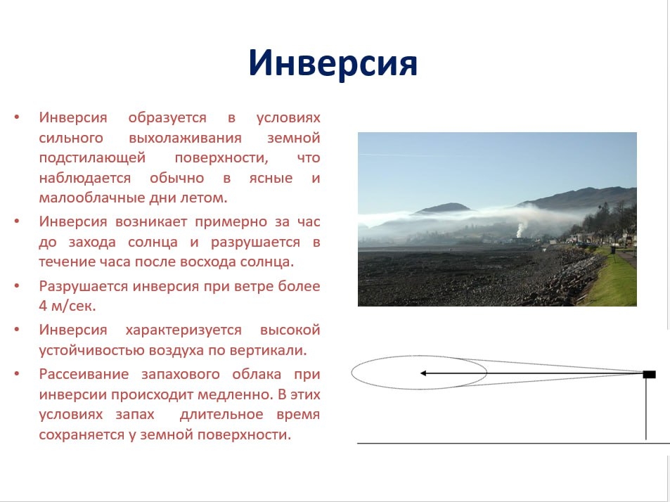 Запах может распространяться по склону и скапливаться в низине. Наибольшая концентрация запаха будет в низком месте.