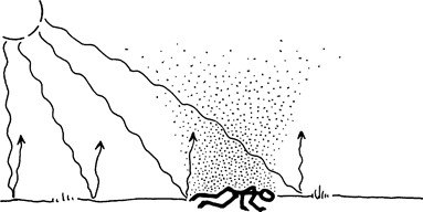 Холодный воздух сверху и теплый воздух снизу могут вызвать образование полосы запаха. Собака будет искать по запаху в этой полосе.